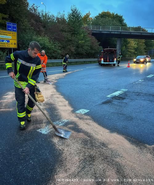 Dadurch, dass wir uns so gut aufgeteilt haben, konnten die Stellen schnell mittels Bindemittel abgestreut und somit ungefährlich gemacht werden.